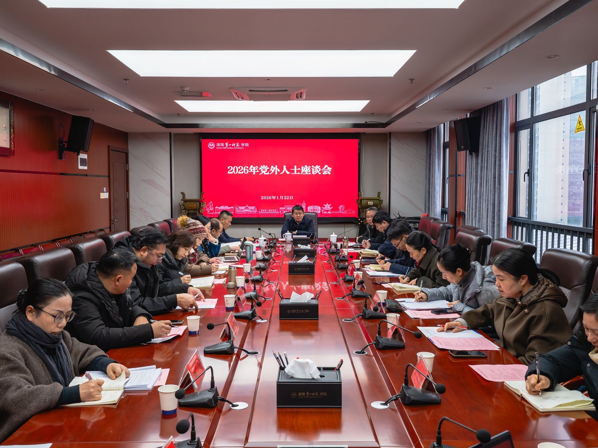 1月22日上午,我校在百熙楼713会议室召开2026年党外人士座谈会。校党委书记罗成翼,党委副书记、校长喻祖国,党委副书记黄快林出席会议,部分党外人士代表、党政办公室、组织部、宣传统战部、教师工作部,教务处、科研处、财务处、后勤处等相关职能部门负责人参加了座谈会。黄快林主持会议。