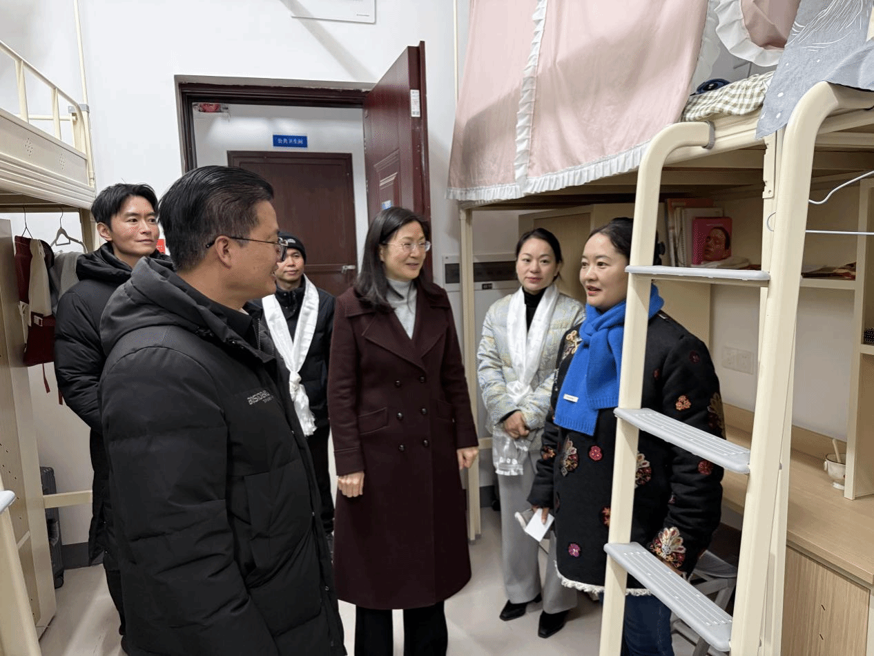 1月22日上午,山南市教育局党组书记、副局长白江山率队来我校东方红校区考察调研,并亲切看望慰问山南师范班师生。山南市教育局副局长冯玮、四级调研员次旺扎西、督导科科长罗桑参加调研。我校党委委员、副校长蒋蓉,初等教育学院相关负责人陪同调研。